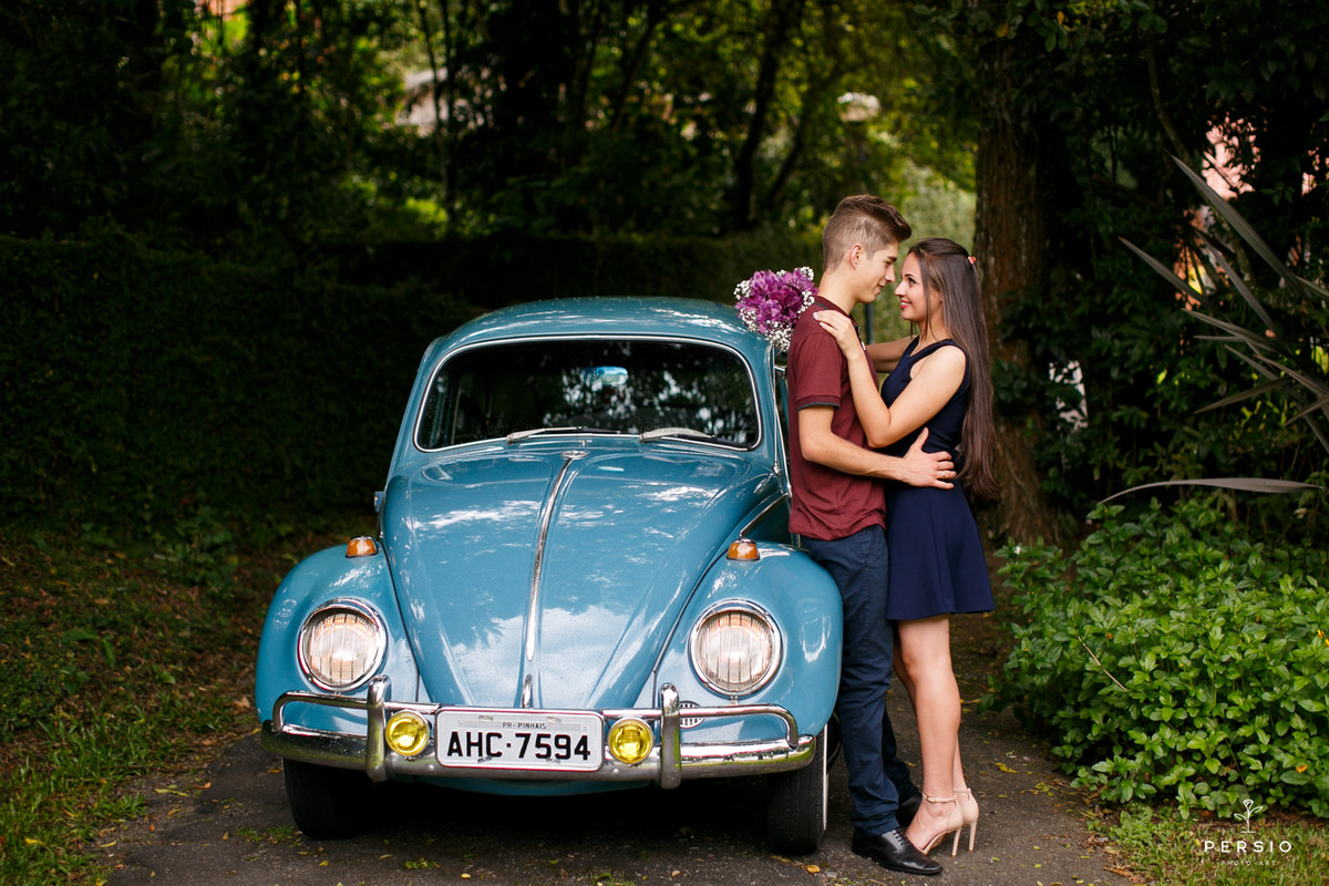 Um casal apaixonado, um fusca e uma linda chuva que começou na metade do ensaio!